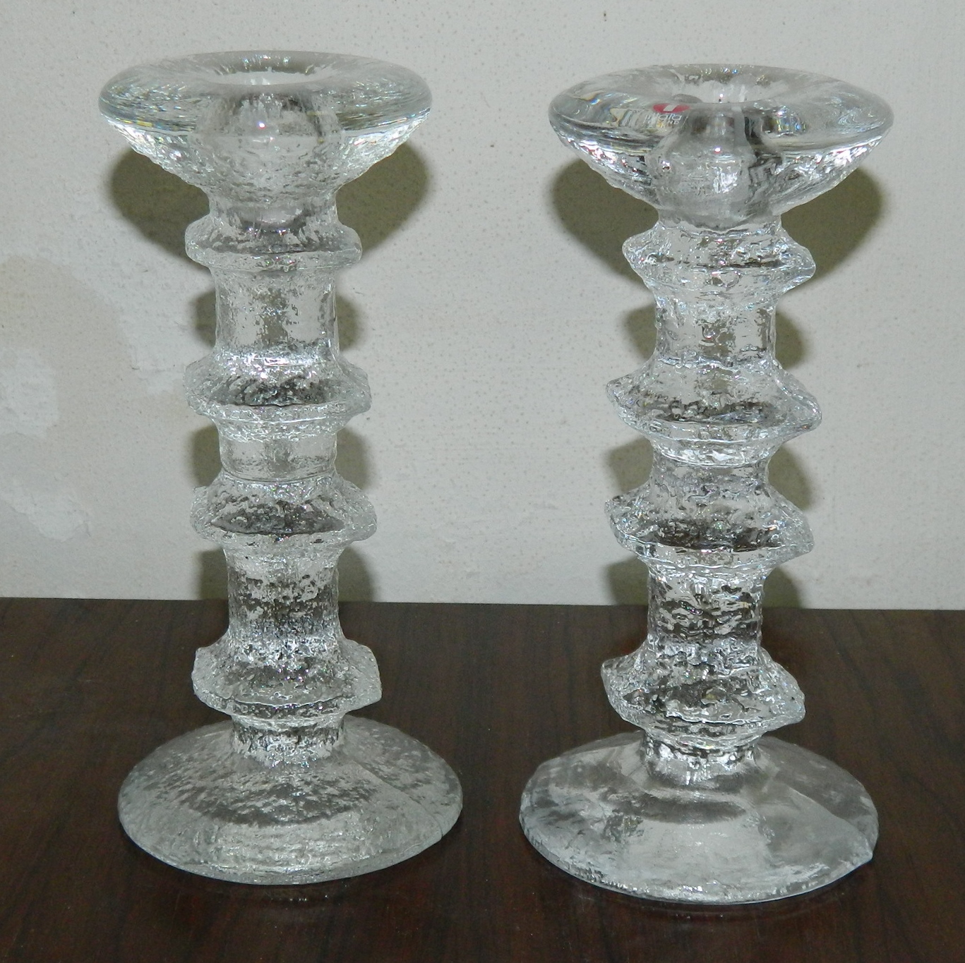 Par "Festivo" lyseholdere i krystalglas fra Iittala, Finland, Designet af Timo Sarpaneva. Fremstår i perfekt stand. Fabrikslabel på den ene stage. 18 cm høje.