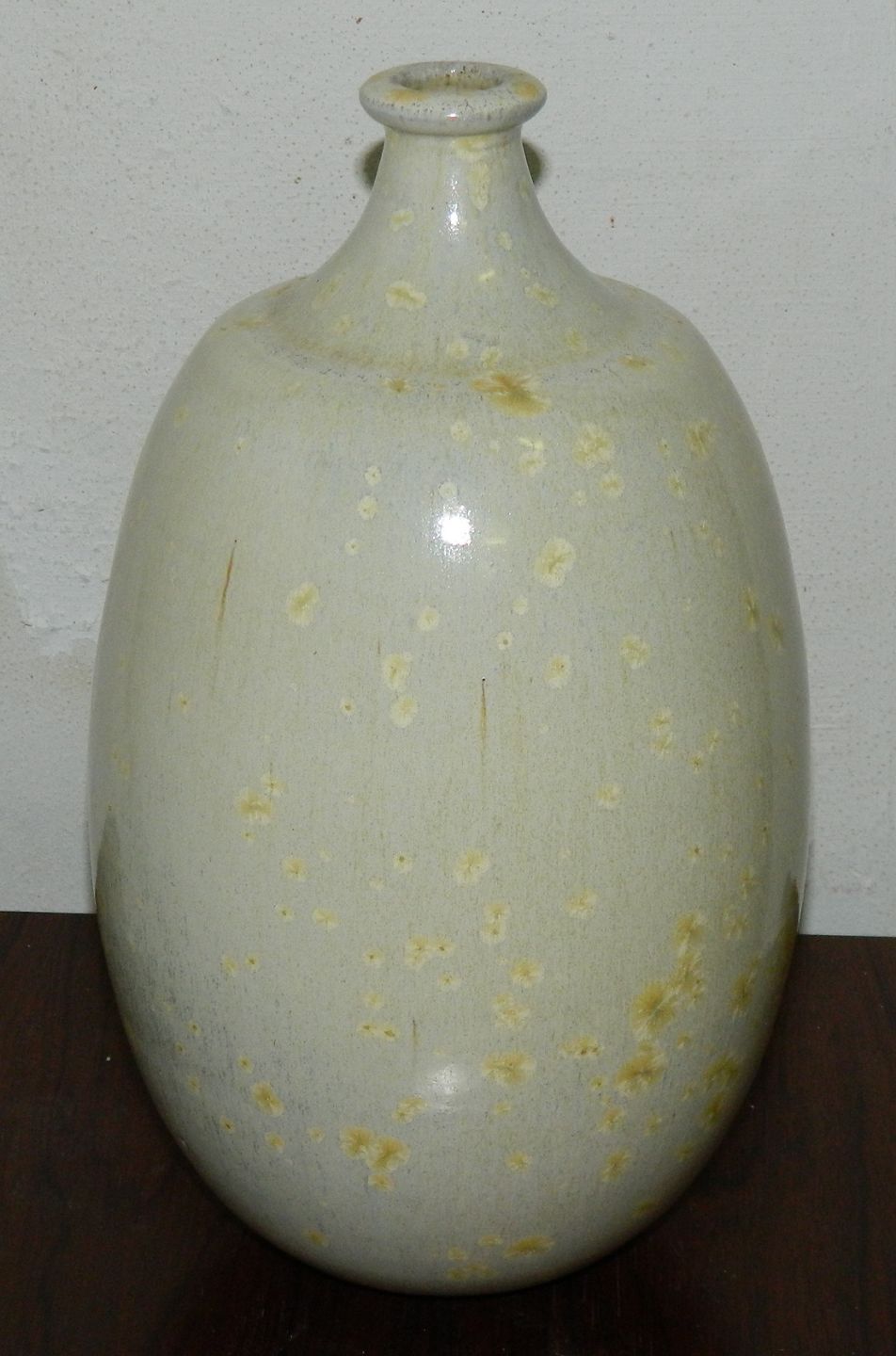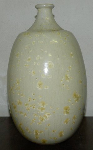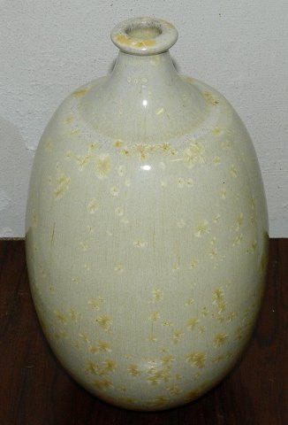 Vase i keramik af Aage Birck fra 1987. Dekoreret med gul/cremet krystal. Fremstår i perfekt stand. Signeret: Birck 87. Vasen er 26 cm høj.