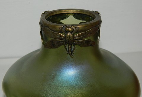 Art Nouveau: Bøhmisk Loetz glasvase med guldsmeddekoration