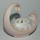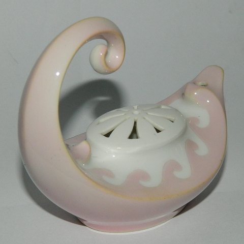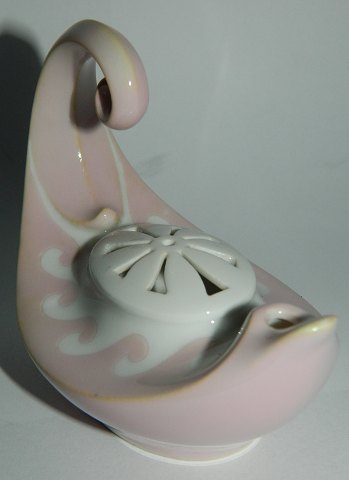 Olielampe i Art Nouveau stil i porcelæn fra Bing & Grøndahl. Designet af Dahl Jensen i begyndelsen af 20. århundrede for B&G. Fremstår i perfekt stand. Fabriksmærket på bunden. Mål: 8½ cm høj og 11½ cm lang.
