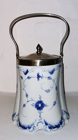 Sekskantet beholder i tin med låg. Dekoreret med oval punslet ramme med ejerens initialer heri. Fremstår i god stand med almindeligt brugsslid. Fremstillet i første halvdel af 19. århundrede. Ingen skader eller reparationer. Højde incl. opretstående hank: 30½ cm.