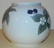 Rund vase i porcelæn fra Royal Copenhagen med dekoration af blåbær, blomster, gren og blade. Fremstillet mellem 1900-1923. Fremstår i god stand uden skader eller reparationer. 2. sortering. Fabriksmærket på bunden. 14 cm høj og 18 cm i diameter midt på vasen.