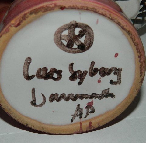 Pebermø: Figur i keramik af kvinde som salt -og peberbøsse fra Lars Syberg keramikfabrik i Taastrup. Fremstår i perfekt stand uden skader eller reparationer. Fabriksmærket på bunden. 16½ cm høj.