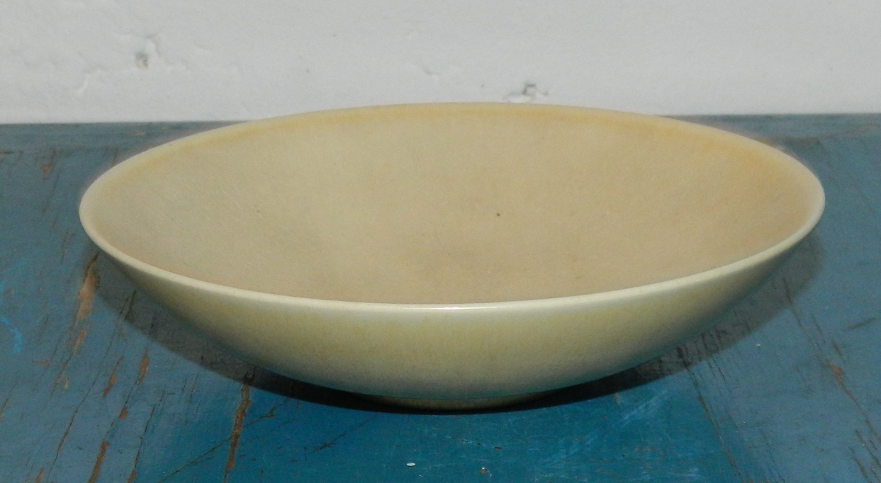 Skål i stentøj fra Palshus. Dækket af en cremefarvet glasur. 1. sortering. Fremstår i god stand uden skader eller reparationer. På bunden indridset PALSHUS DENMARK PL-S (grundlægger samt formgiver Per Linnemann-Schmidt) samt modelnummer 1124. Mål: 3½ cm høj og 14 cm i diameter.