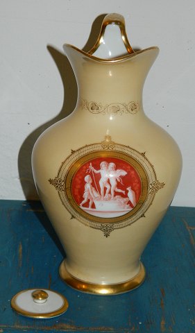 Kande til chokolade i porcelæn fra Bing & Grøndahl. Dekoreret med motiv af Bertel Thorvaldsen. Fremstår i god stand uden skader eller reparationer. Fabriksmærket - utydeligt - på bunden. 28 cm høj.