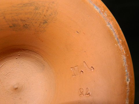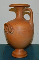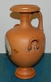 Græsk vase med motiv af Helligdomsklipperne på Bornholm. Vasen er fremstillet hos Michael Andersen i 1890´erne. Som det fremgår af billedet er der lidt overflade ridser i motivet. Derudover ses lidt kalkaflejringer her og dér på vasen. Ingen skader eller reparationer. Fabriksmærket på bunden med indstemplet M. A. samt modelnummer 75. Vasen er 25 cm høj.