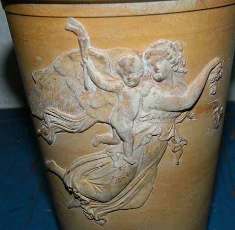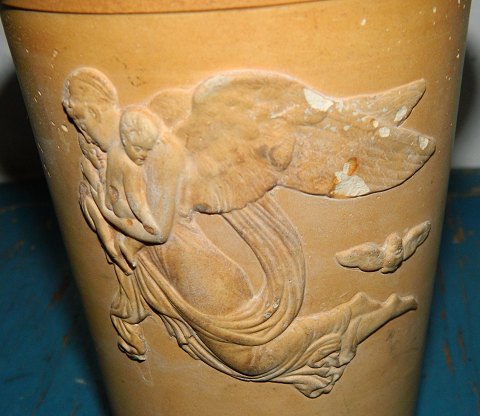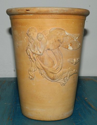 Blomsterskjuler i terracotta fra den københavnske lervarefabrik Peter Ipsen. Fremstillet i slutningen af 19. århundrede. Underskål mangler ! Dekoreret med Bertel Thorvaldsen´s "Natten & Dagen" på hver sin side i relief. "Natten" især har - her og der - små skår og "Dagen" mangler sin venstre arm ! Selve skjuleren er i god stand uden skader eller reparationer. Indstemplet P. Ipsen, samt modelnummer 180. Skjuleren er 15 cm høj.