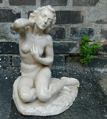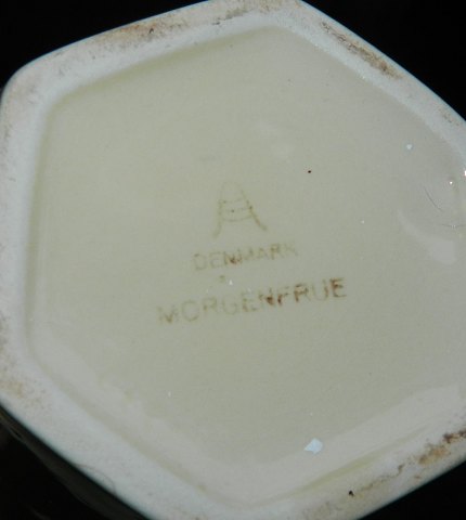 Vase i fajance fra Aluminia i Morgenfrue. Fremstår i perfekt stand. Fabriksmærket på bunden. 10½ cm høj.