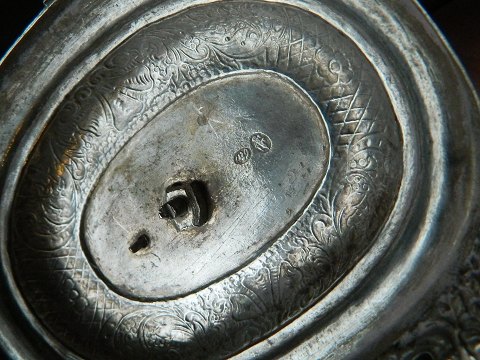 Stabelstage i sølv fra 19. århundrede. Fremstår i god stand. Stemplet med mestermærke på undersiden af foden. 15½ cm høj.