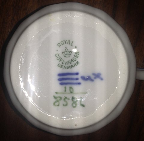 Sennepskrukke med låg i porcelæn fra Royal Copenhagen Kantet Blå Blomst. Modelnummer 8586. I god stand uden skader eller reparationer. 9½ cm høj.