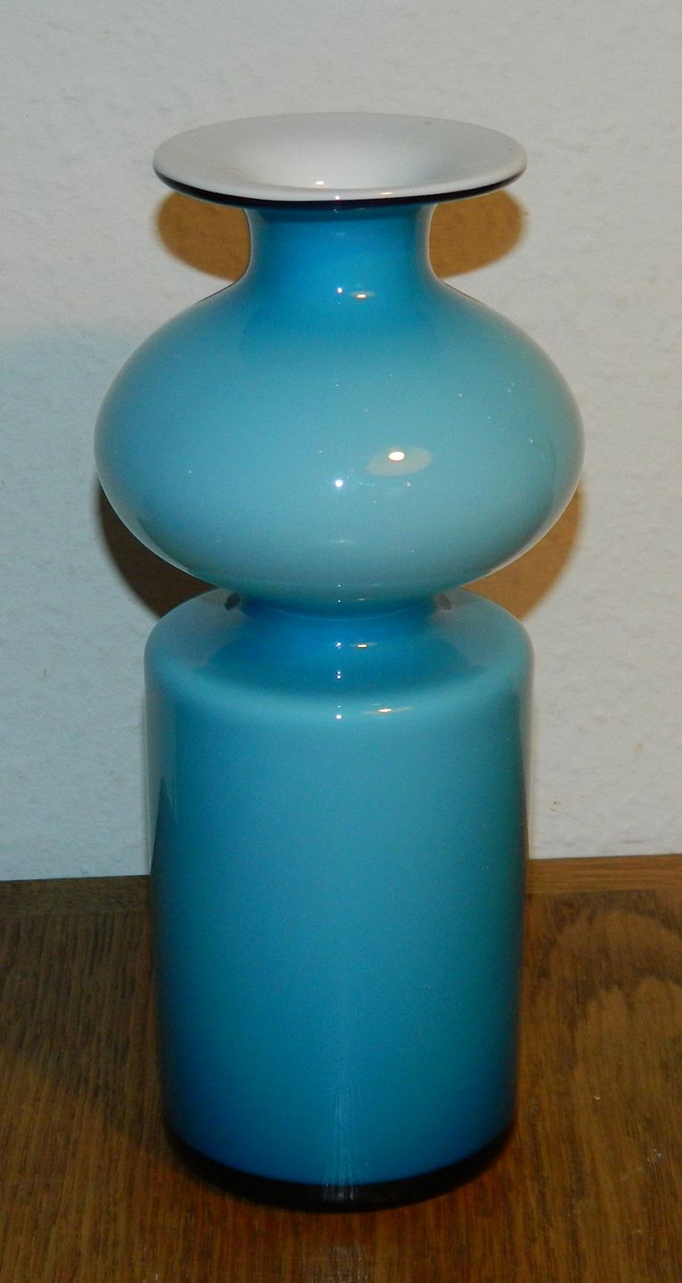 Blå/hvid vase i glas fra Kastrup / Holmegaard Glasværk. Fremstår i perfekt stand.