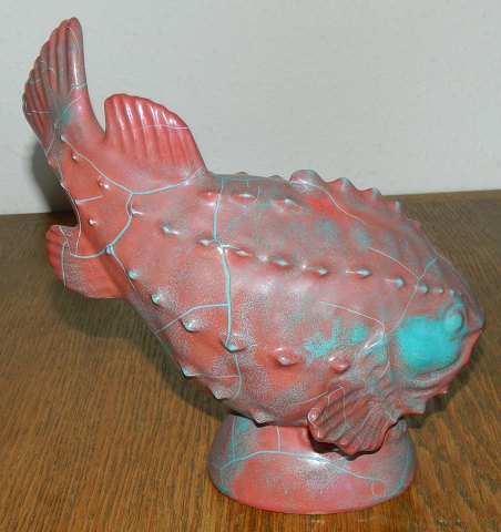Figur i keramik af stenbider fra Peter Ipsens Enke. Dækket af en smuk rød og grøn Danit-glasur. Fremstillet i 1930´erne på Ipsen fabrikken i København. Fremstår i god stand uden skader eller reparationer. Har dog tre meget små glasurafslag. Èt ses på billed ! Fabriksmærket på bunden med Krone samt PIE. Stemplet er næsten dækket af glasuren. Figuren er 22 cm høj.