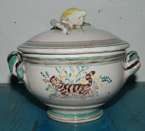 Lågskål med dekoration af kat fra Syberg fabrikken