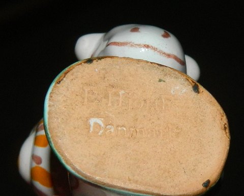 Bemalede dyr i keramik fra L. Hjorth, Bornholm. Vædderen (RESERVERET) er fabriksmærket. Hesten er IKKE fabriksmærket. Begge fremstår i god stand uden skader eller reparationer. Hesten er 6 cm høj og 9½ cm lang.