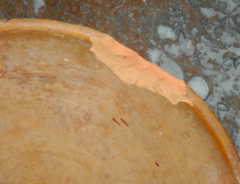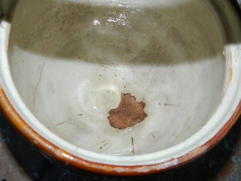 Dansk barselspotte i keramik fra ca. 1880. Fremstår med brugsslid - skår og revner som vist på fotografierne. 29½ cm høj