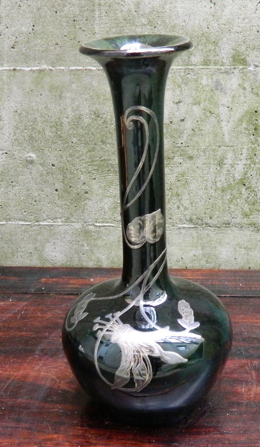Skønvirkeperioden: Vase i keramik med floral sølvdekoration