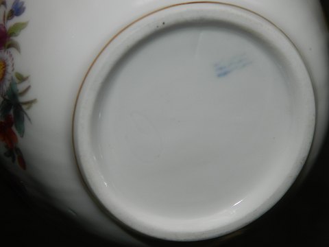 Skål i porcelæn fra Royal Copenhagen i Saxisk Blomst. Fremstillet omkring 1860-80. Ligeledes dekoreret i bunden indvendigt. Ingen skader eller reparationer. Fabriksmærket på bunden. 7 cm høj og 11 cm i åbningsdiameter