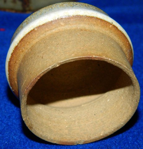 Tepotte i keramik af Finn Lynggaard fra eget værksted. Dækket af en lys grålig glasur. Hank i bambus i god stand. To små overfladeridser på kanten nederst på låget (se foto). Stemplet kunstnersignatur samt logo på undersiden. 15½ cm høj. 21½ cm høj incl. opretstående hank.