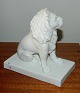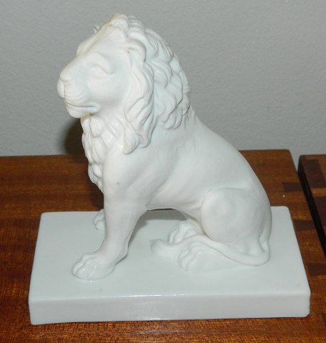 Figur af siddende løve i bisquit fra Bing & Grøndahl. Fremstillet i slutningen af 19. århundrede. Utydeligt fabriksmærke B&G på bunden. Mål: H. 13,5 cm. Basen måler 12,5 cm x 7 cm. Fremstår i god stand bortset fra ganske lille skår på basens bagside.