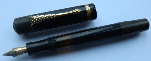 Sort Hoover 305 fyldepen. Piston påfylder. Påfyldningsmekanismen fungerer ikke. Tilsyneladende fastlåst. Skal udbedres før brug. Ellers ingen skader eller reparationer. Alle dele original Hoover inclusive 14 karat guld spids størrelse. 12 cm lang.