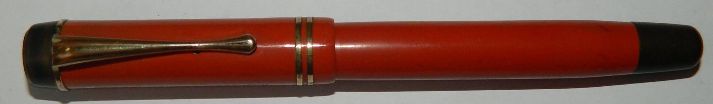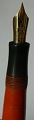 Koralrød Montblanc Masterpiece nr. 20 fyldepen med push button filler. Fremstillet i 1930´erne. Fremstår i god stand. Ny gummisæk skal indsættes før brug. Ved tillæg på kr. 325,00 kan fyldepennen leveres med ny gummisæk. Toppen, sort sektion samt stjerne, tilhører ikke denne model ! Øvrige dele originale Montblanc inclusive 14 karat guld spids. 13 cm lang.