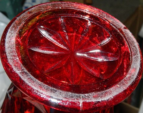 Vase i rødt presset glas fra Fyens Glasværk ca. 1920. Fremstår i god stand uden skader eller reparationer. 17 cm høj.