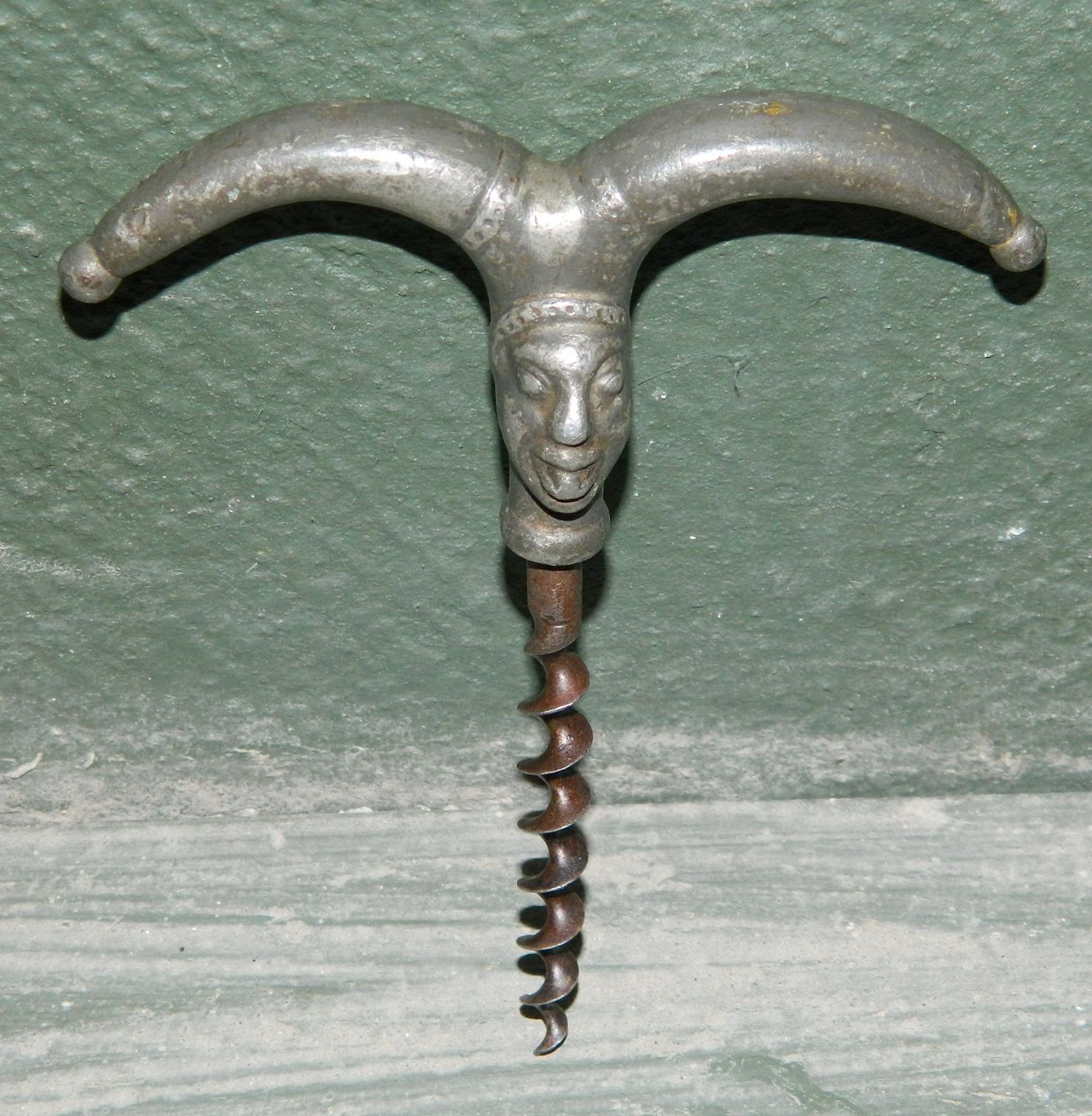 Figurativ proptrækker: Skandinavisk proptrækker forestillende naren med sin hat. Fremstår i god stand uden skader eller reparationer. Fremstillet omkring 1920. 11½ cm høj.