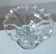 Kandisskål / sukkerskål i klart glas. Bølget og ombukket kant på kummen. Fremstår i perfekt stand. Ingen reparationer. H. 11 cm