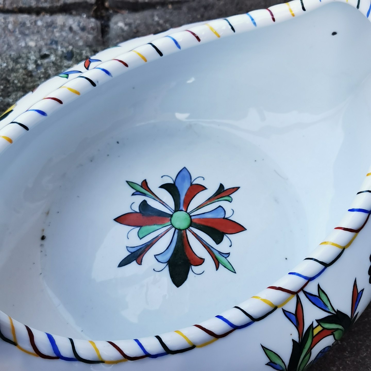 Såkaldt kjænge (kjenge) i porcelæn fra den norske porcelænsfabrik Porsgrund. I perfekt stand. Ingen skader eller reparationer. Fabriksmærket på bunden. Mål: H. 22 cm Brede 21 cm samt 38 cm lang.