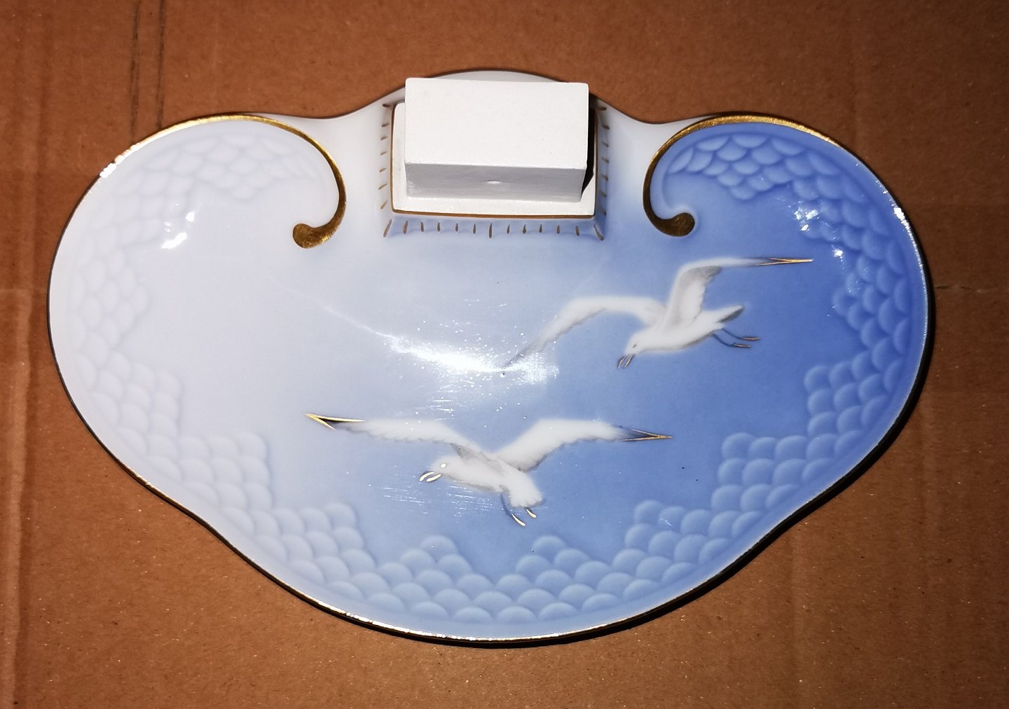 Bing & Grøndahl Mågestel skål i porcelæn som tændstikæske-holder. Fremstår i god stand. 1. sortering. Mål: H. 6 cm L. 18½ cm.