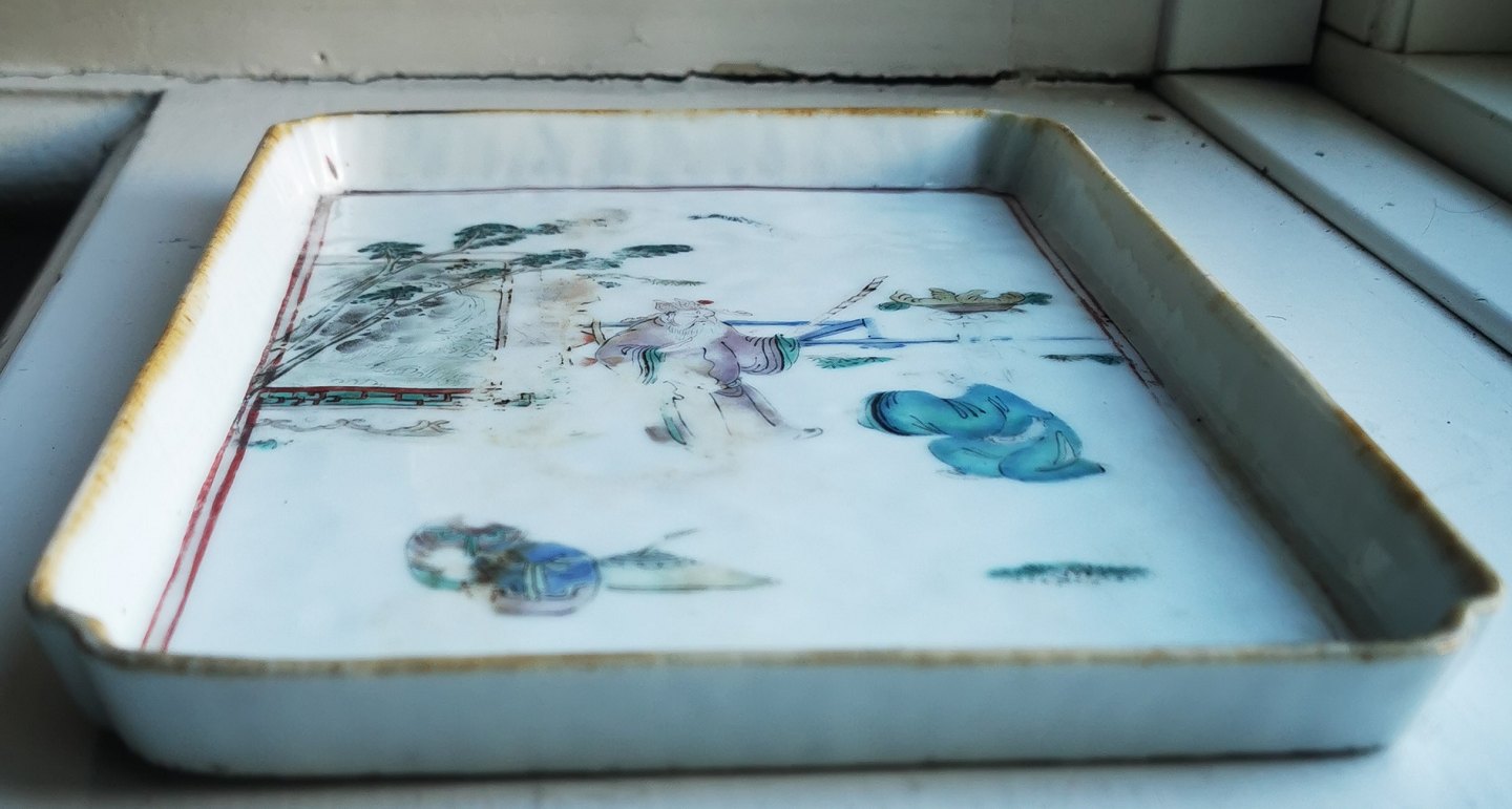 Bakke i porcelæn med motiv fra Kina 19. århundrede.
