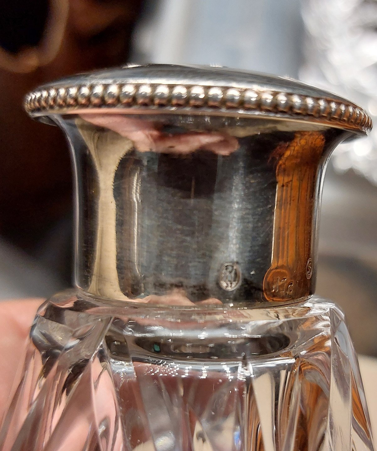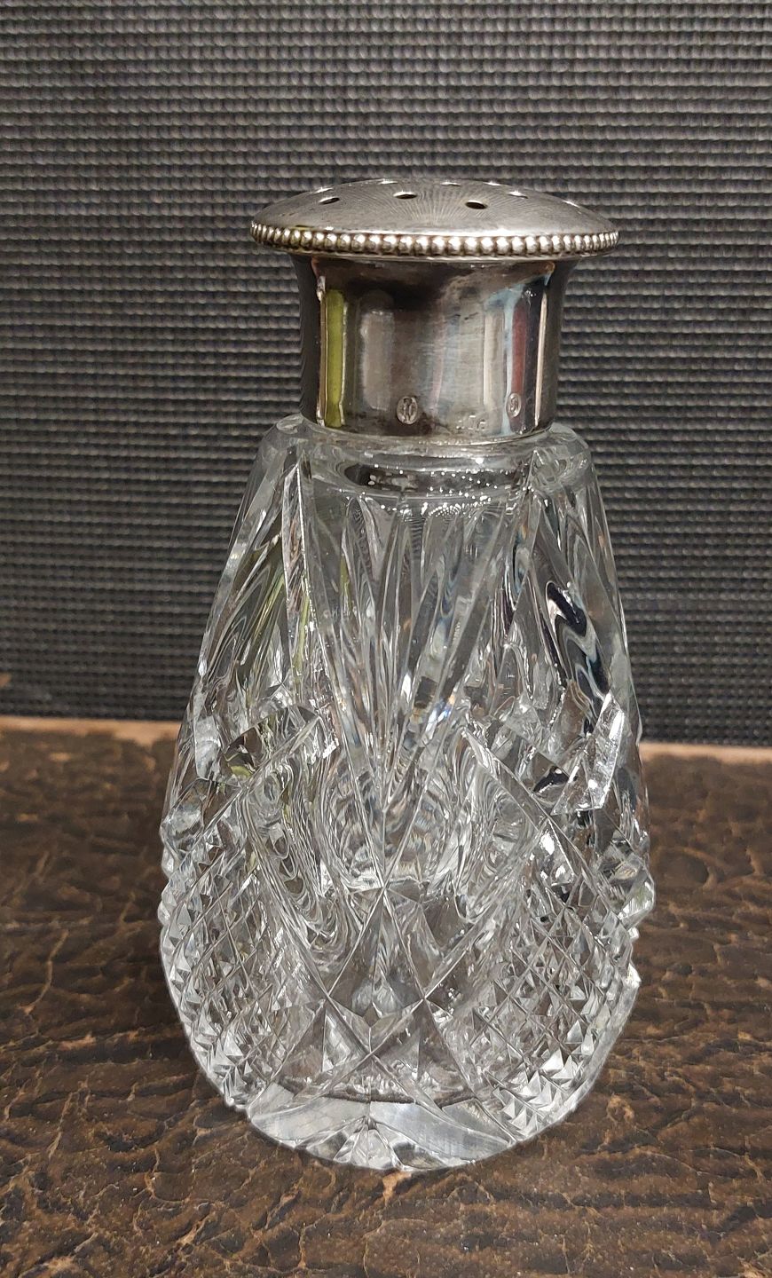 Strødåse i glas med sølvtop. Perfekt. H. 13,5 cm