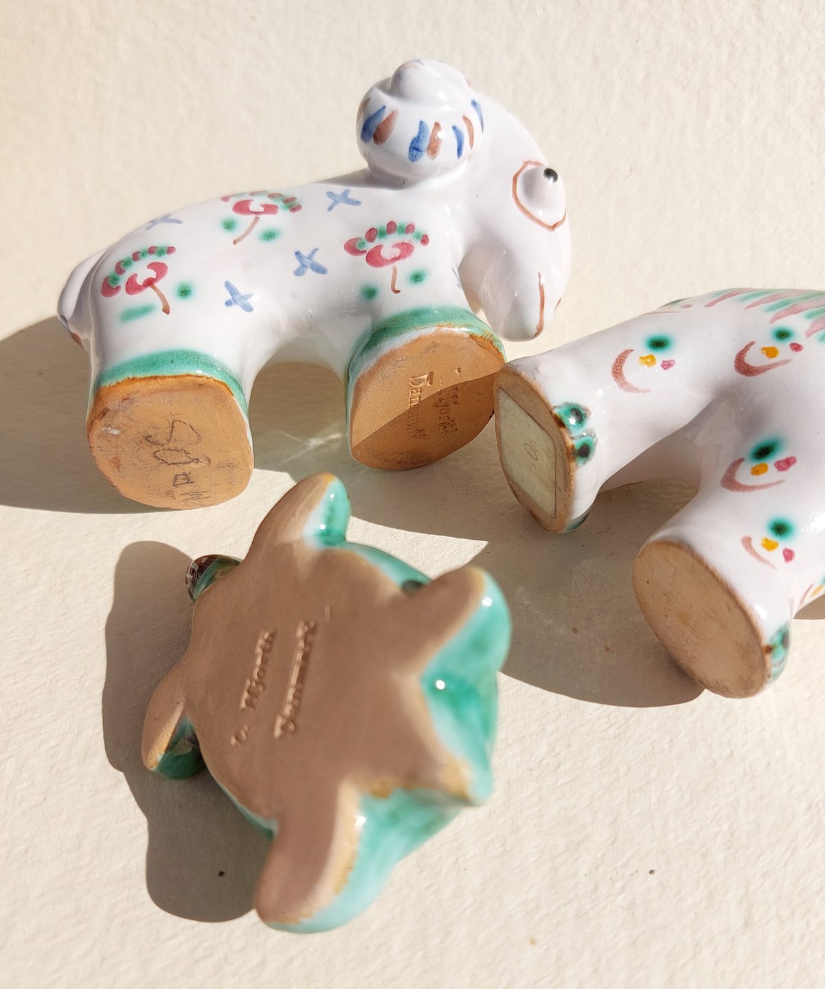 Tre dyr i keramik fra Lauritz Hjorth, Bornholm. Alle i perfekt. Alle fabriksmærket med L. Hjorth.