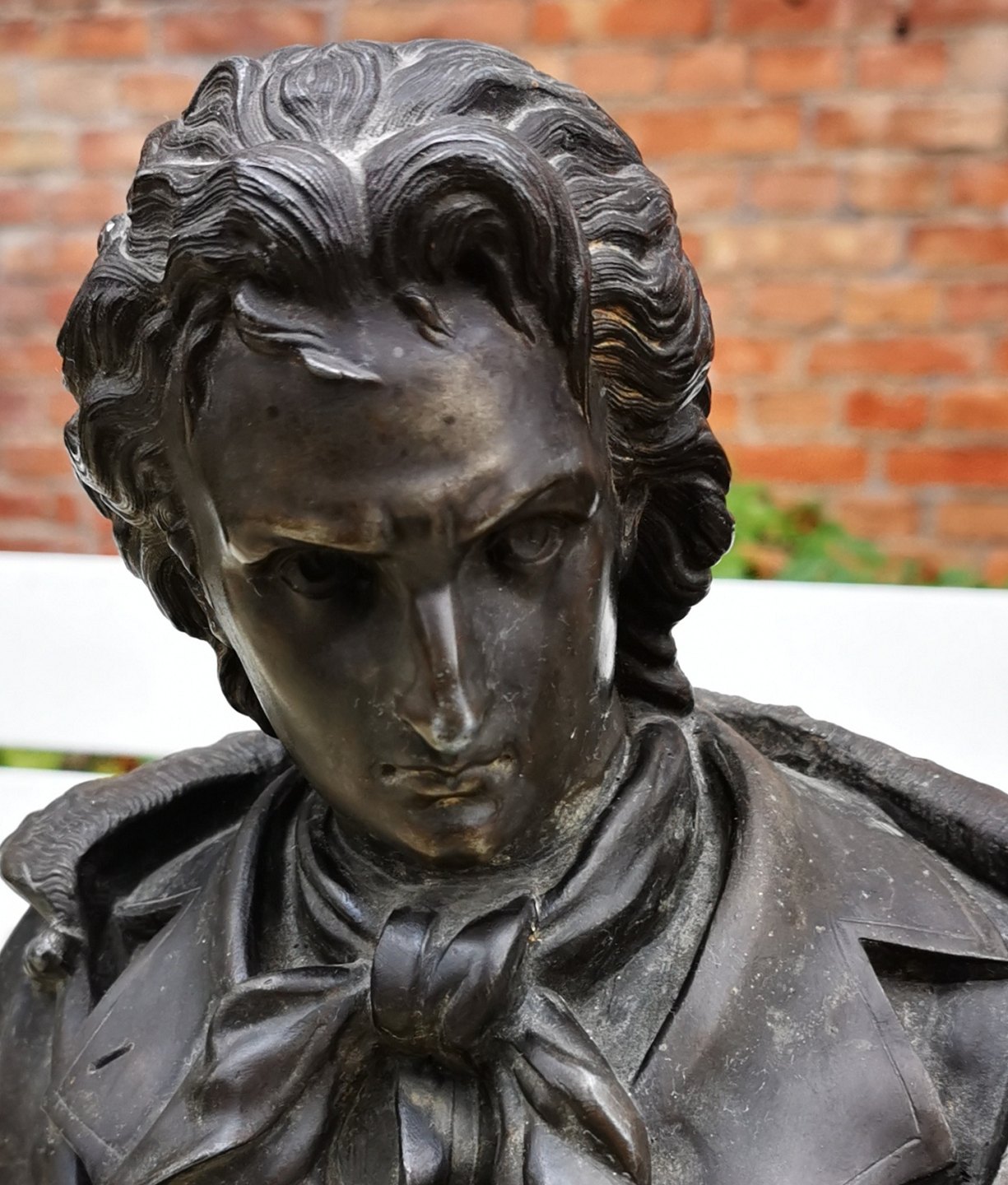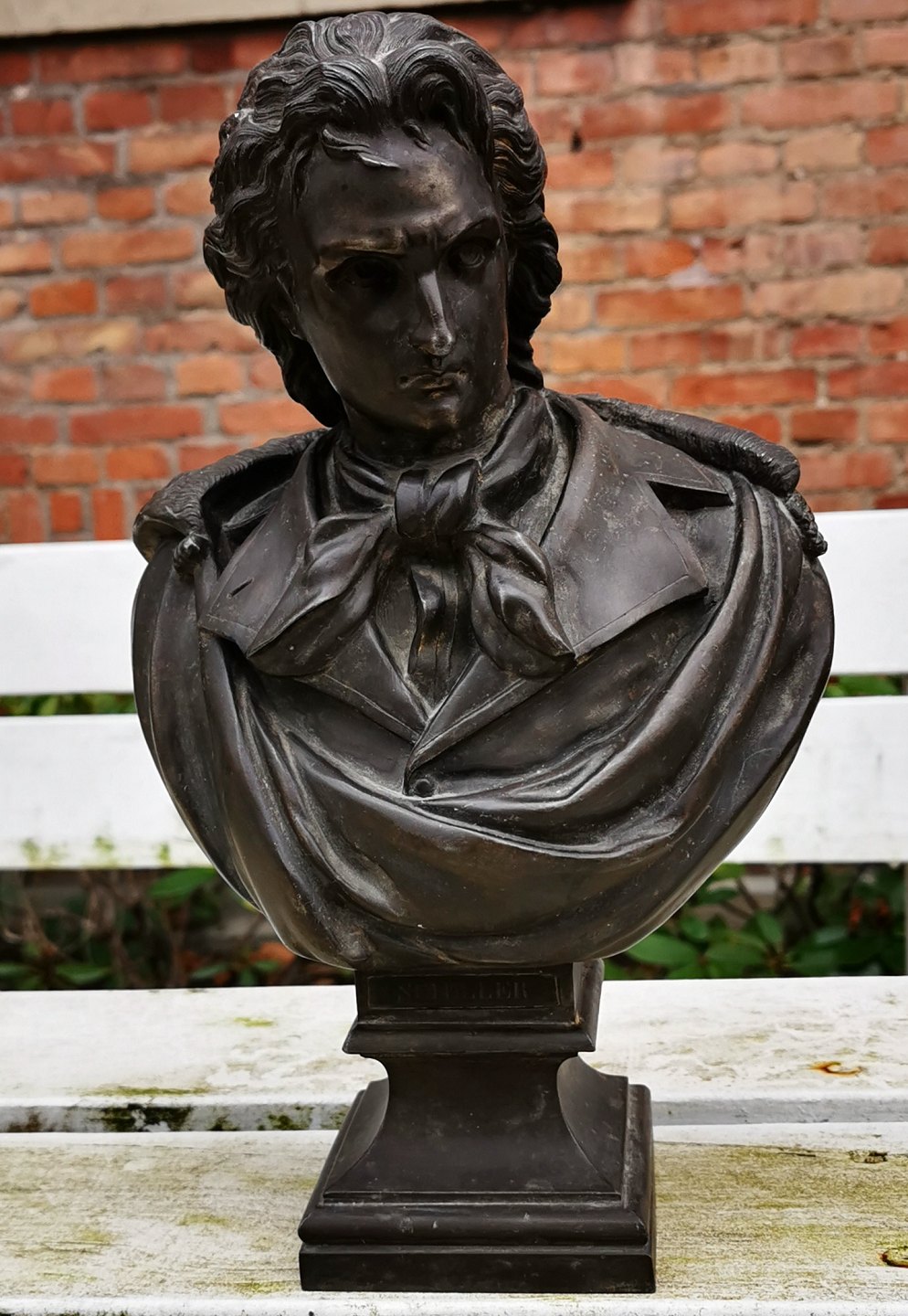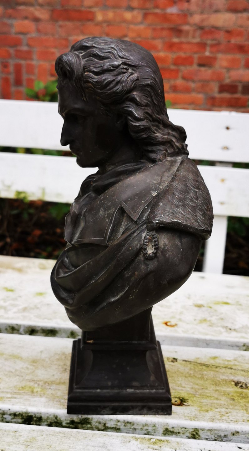 Portræt buste af Friedrich Schiller i metal. Bronce patineret. I god stand uden skader eller reparationer. Ubekendt kunstner og støbeværkstes. Formodes fremstillet i begyndelsen af 20. Århundrede. Busten er 32 cm høj og 21,5 cm bred. Foden måler 10 x 10 cm. FRIEDRICH Schiller var udover historiker og digter også filosof og dramatiker. Han levede fra 1759 til 1805.
