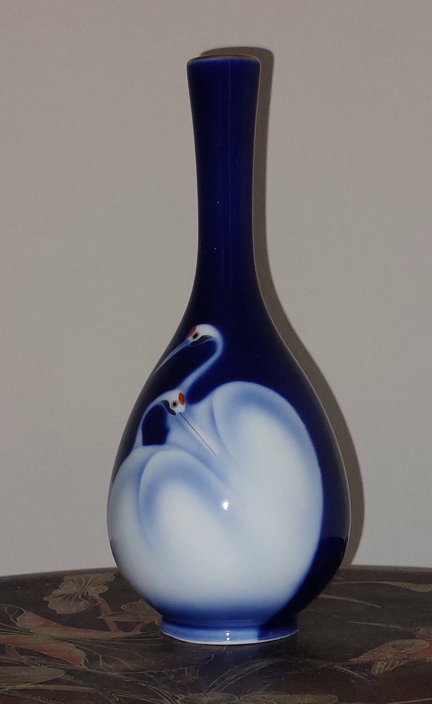 Gammel japansk art nouveau Fukagawa porcelænsvase med dekoration af traner. I god stand. Ingen skader eller reparationer. Fabriksmærket i bunden. Mål: 22½ cm høj (8,85 tommer).
