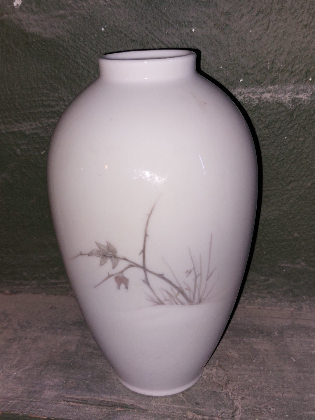 Royal Copenhagen vase med solsort i vintermotiv