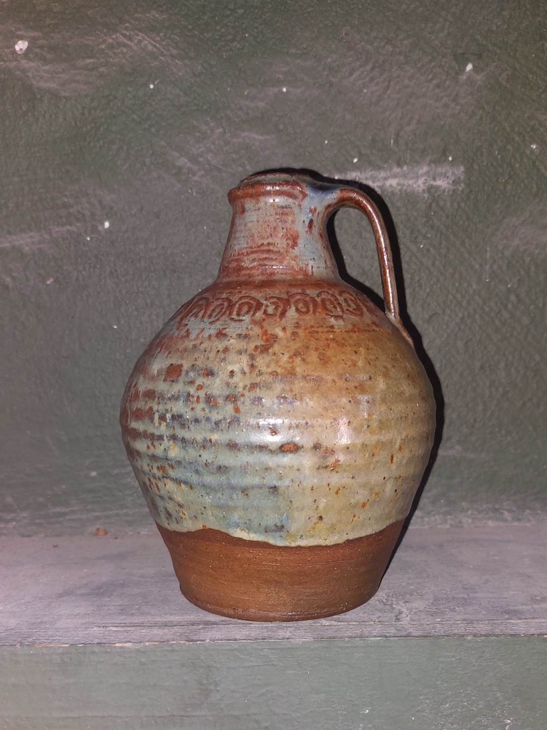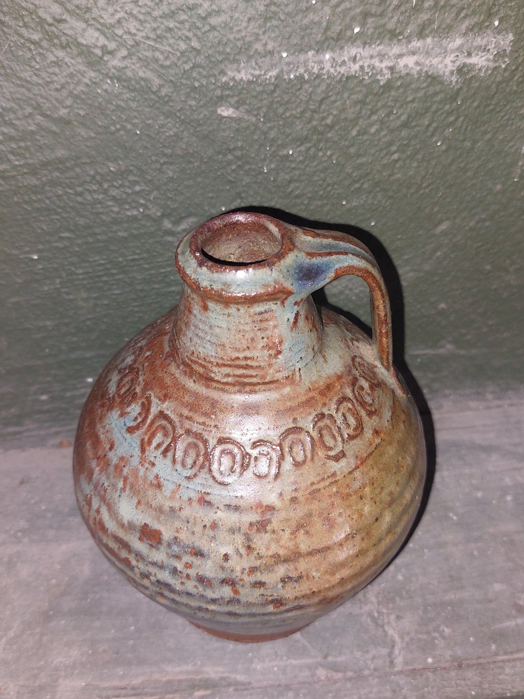 Gutte Eriksen: Kande I keramik med stempeldekoration. Delvist glaseret. Uden signatur. Fremstår I perfekt stand. H. 15,5 cm.