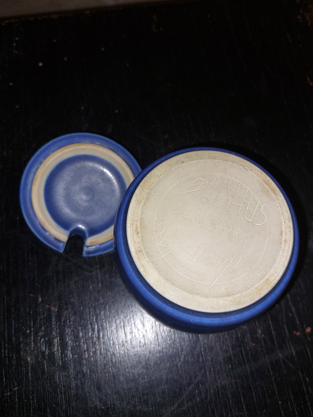 Blå lågskål i keramik fra Palshus. Designet af fabrikkens grundlægger Per Linnemann-Schmidt. I god stand uden skader eller reparationer. 1. sortering. Fabriksmærke, kunstnersignatur PL-S samt modelnummer 1194/1 indridset på bunden. H. 9.5 cm