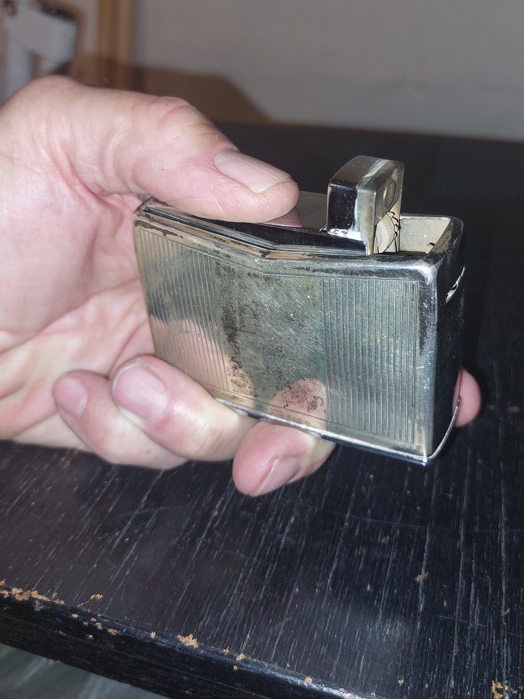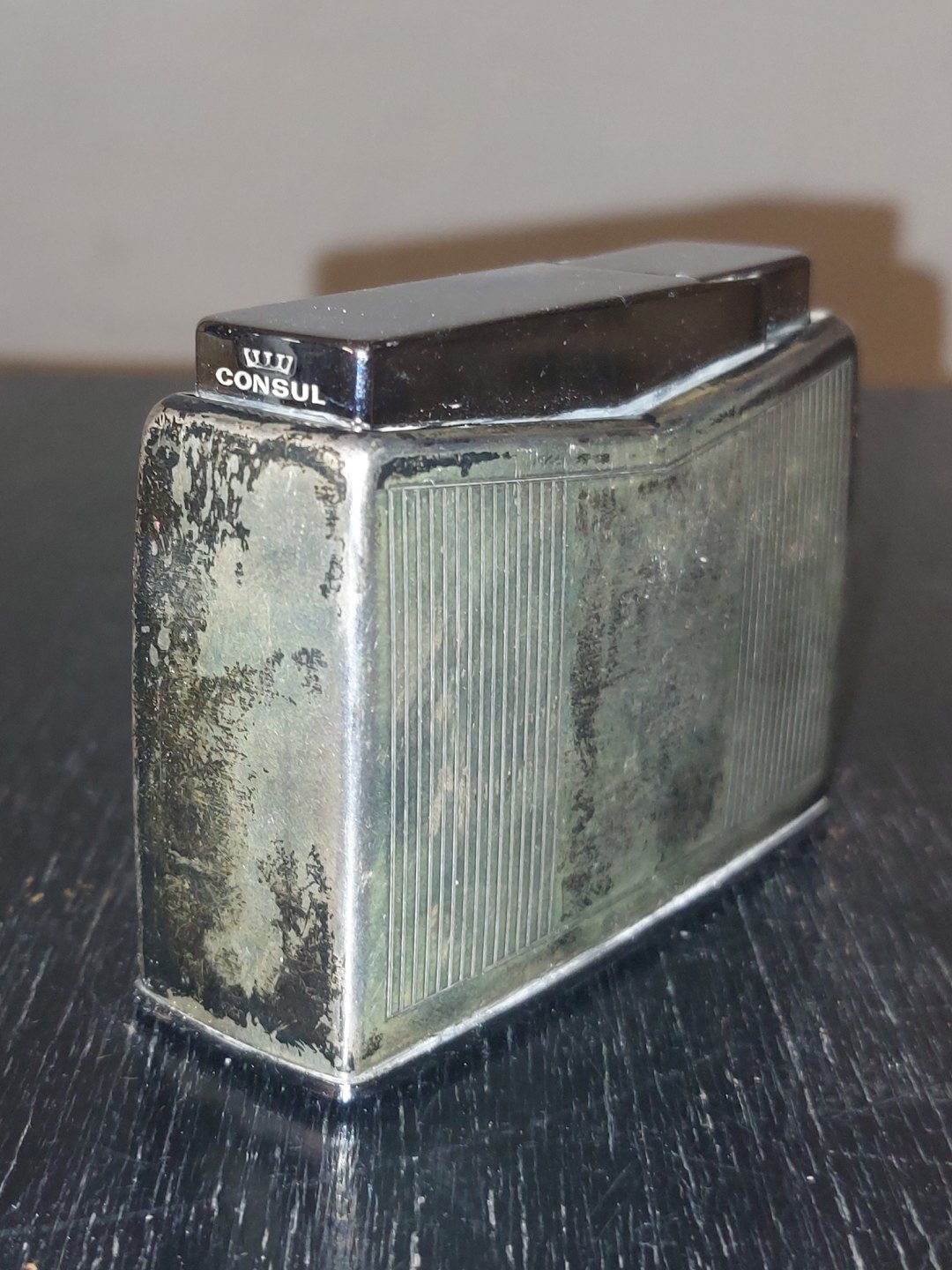 Lighter i Sterling sølv fra Georg Jensen. Indgravering. Fungerer ikke. Modelnummer 366 D: H. 6,5 cm L. 8 cm