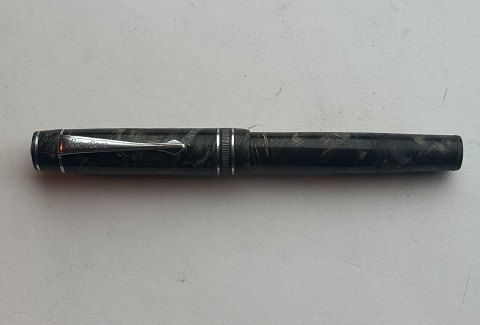 Grøn marmoreret Big Ben fyldepen fra ca. 1950. Piston blæk påfylder. Er blevet testet. Holder blæk og således klar til at blive brugt. Der ses hverken fabrikstekst på hætten eller kroppen. Spidsen er 585 guld men uoriginal. Det eneste med navn på er clipen. Mål: L. 13 cm