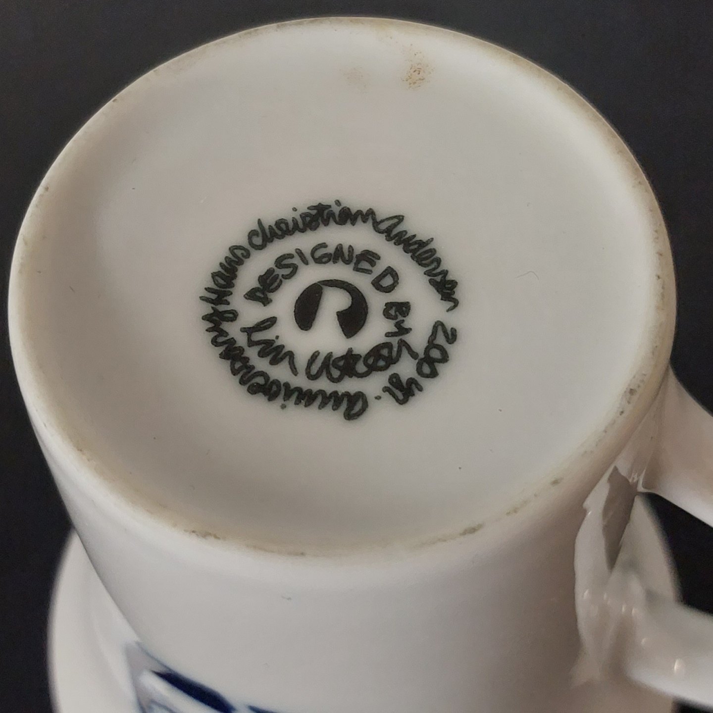 Hvidt krus i porcelæn med H. C. Andersen klip. Desigmet af Lin Utzon. I god stand. H. 10,5 cm