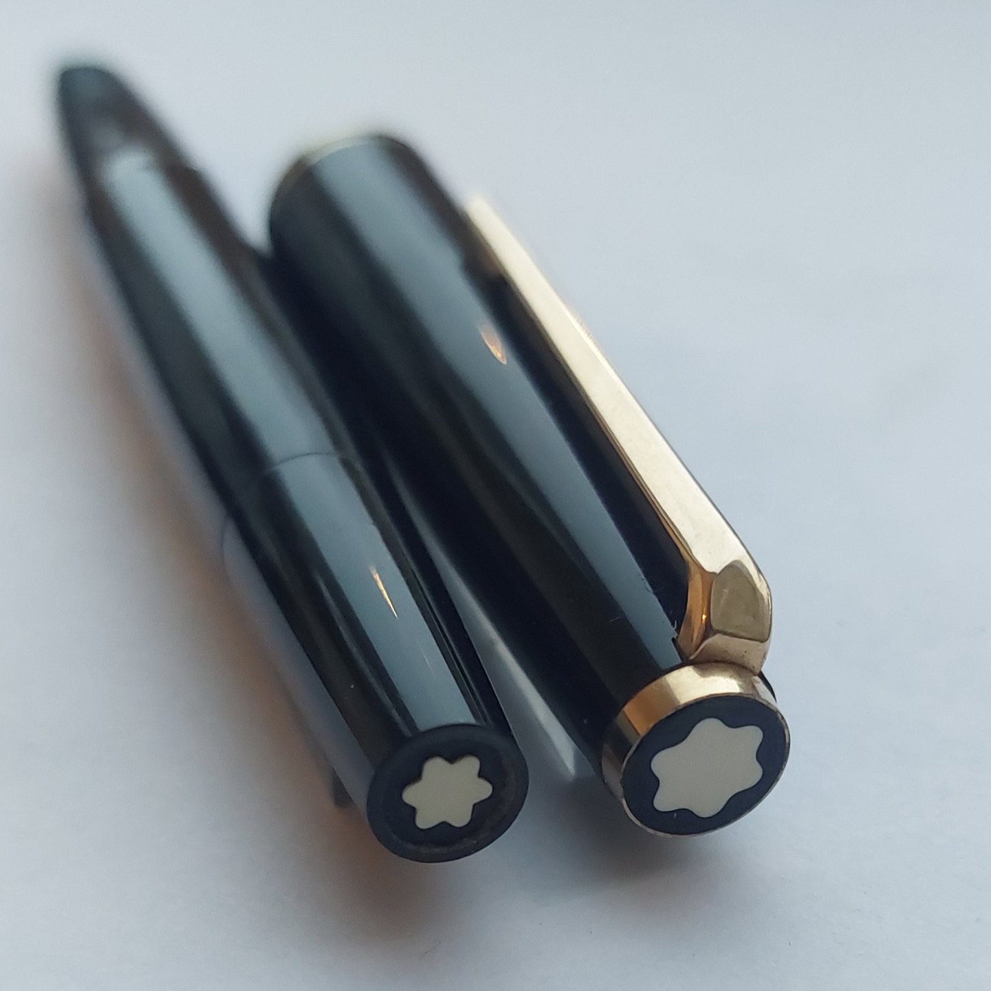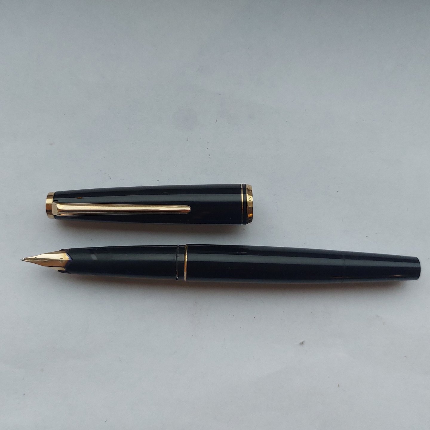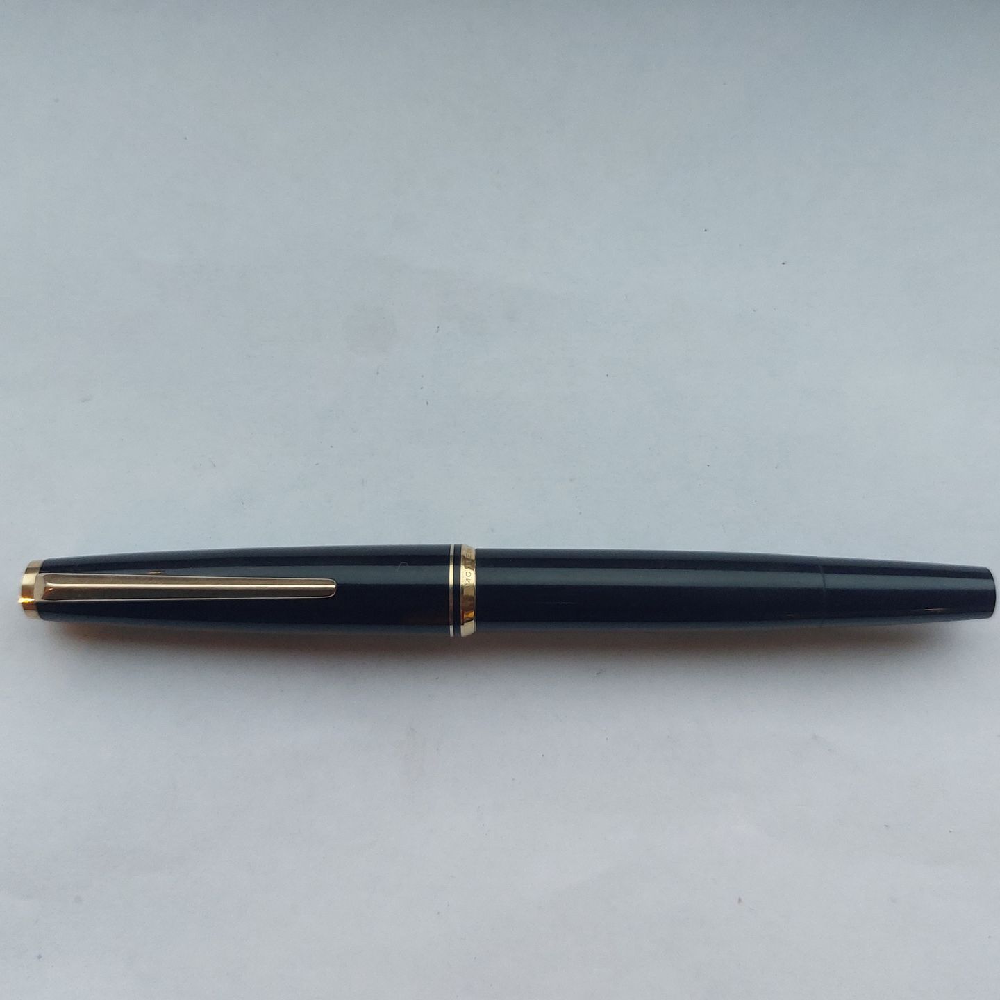 Sort Montblanc nr. 221 fyldepen fra 1970'erne. Piston blæk-påfylder..klar til at blive brugt. Ingen skader eller reparationer. Mål: 13,5 cm