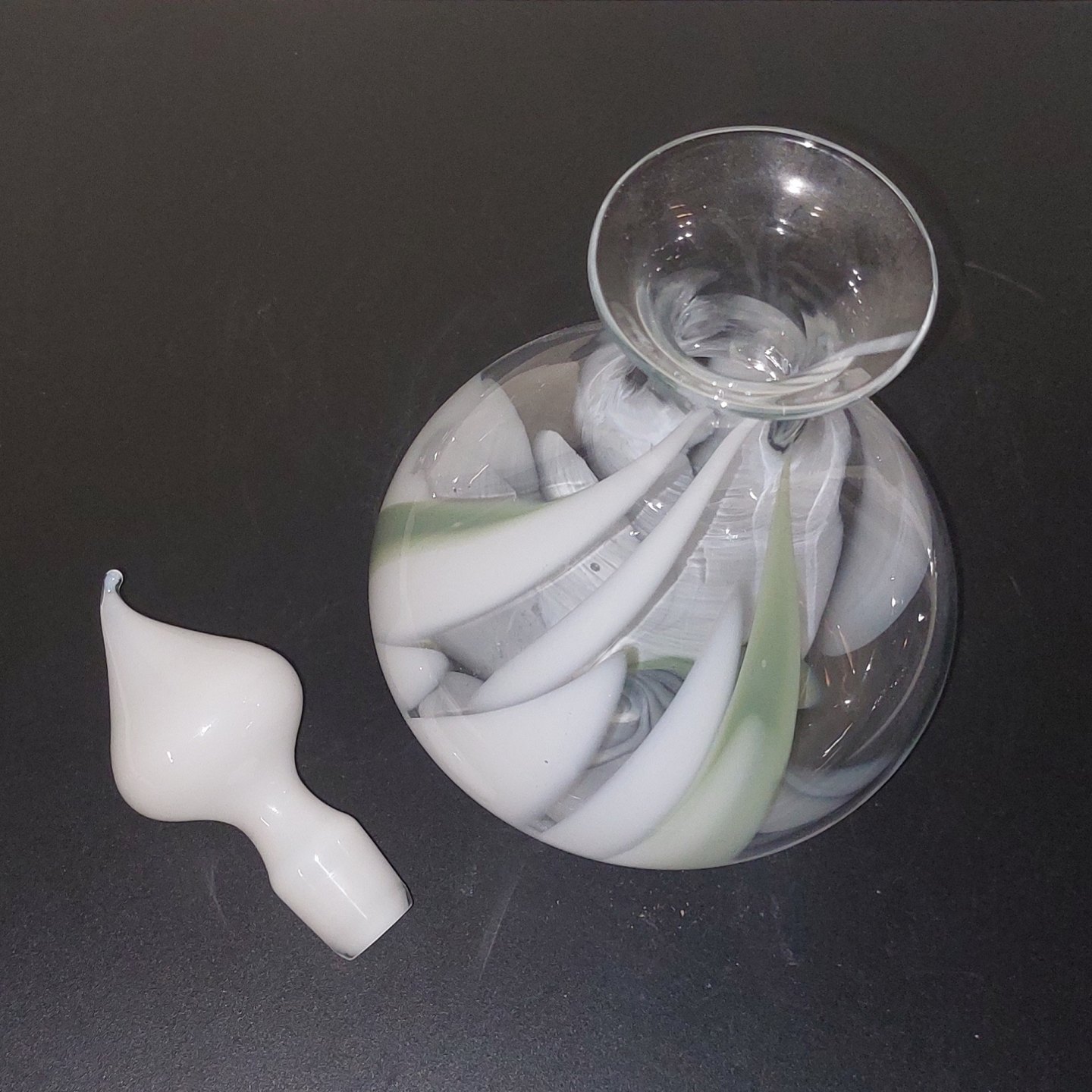Vintergæk karaffel med prop i glas fra Holmegaard Glasværk designet af Per Lütken. I god stand uden skader eller reparationer. Mål:.H. 23 cm