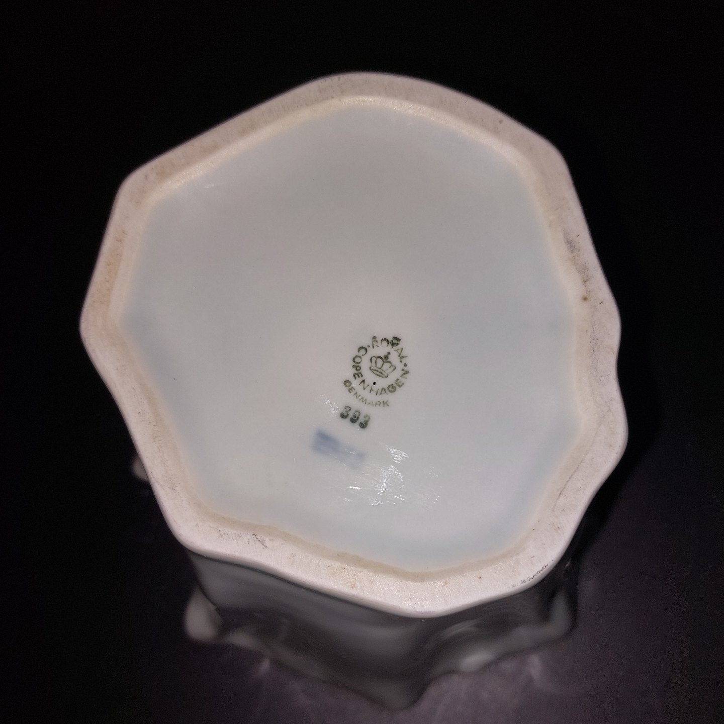 Royal Copenhagen Mint grøn Natura vase i porcelæn af Ole Kortzau. Fremstår I god stand uden skader eller reparationer. 1. Sortering. Fabriksmærket på bunden. H. 12,5 cm