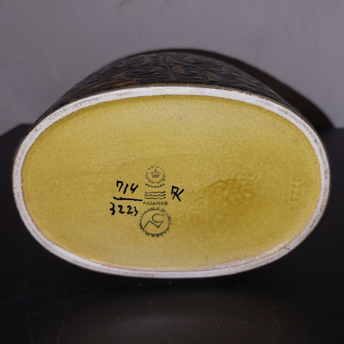 Stor bacca fajance vase fra Royal Copenhagen designet af svenske Nils Thorsson. 1. Sortering. I god stand uden skader eller reparationer. Fabriksmærket på bunden sammen med kunstnersignatur. Modelnummer 3223. HØJDE: 21 cm.