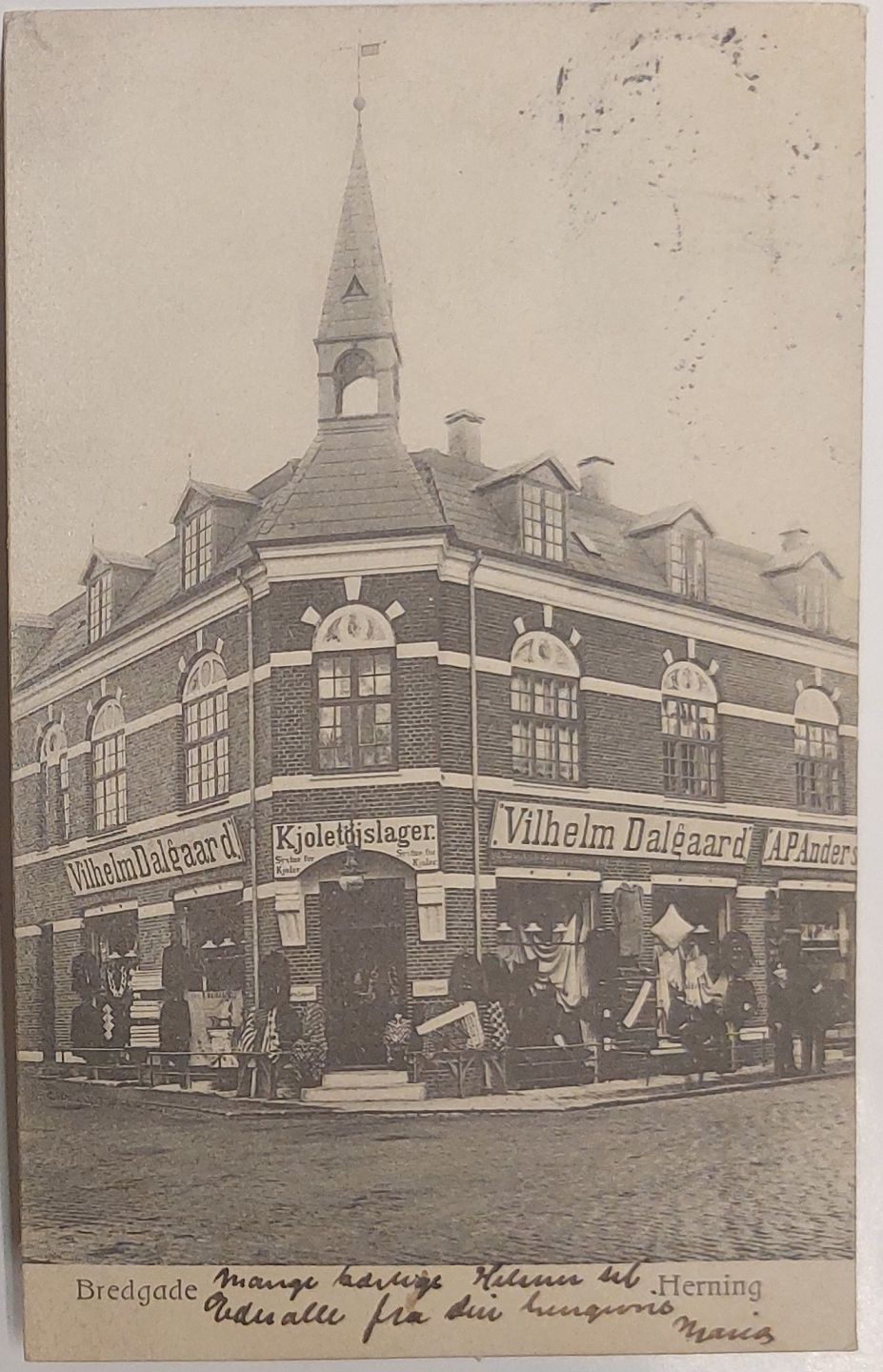Postkort: Butiksfacade I Bredgade,.Herning i 1907