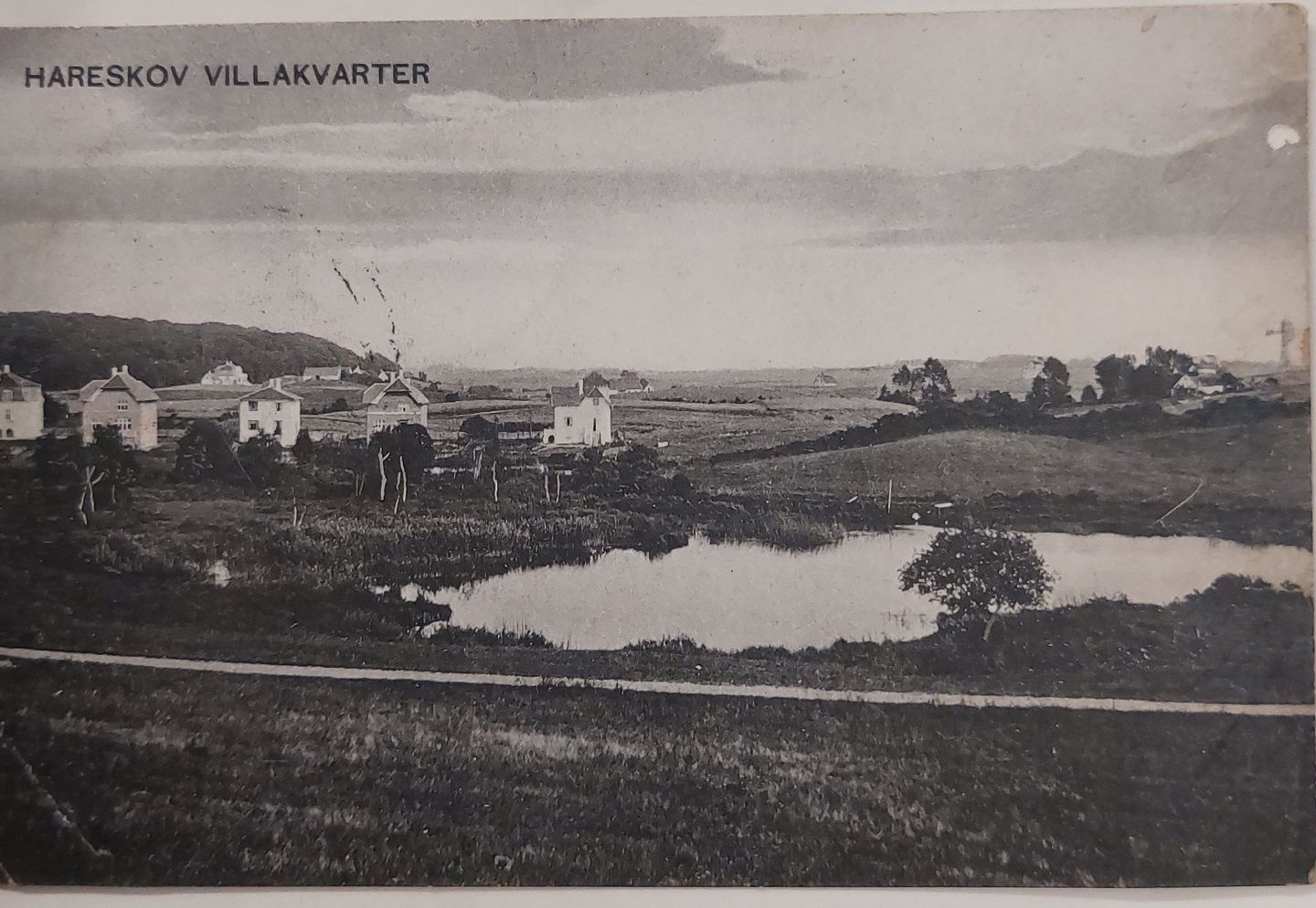 Postkort: Parti fra Hareskov Villakvarter. Annulleret I 190. Lidt brugsspor I hjørnerne (se fotos).