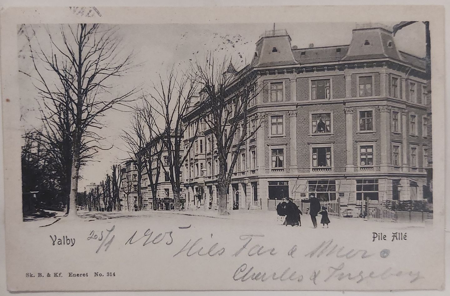 Postkort:.Motiv fra Pile Alle Valby/Frederiksberg. Annulleret KØBENHAVN I 1905