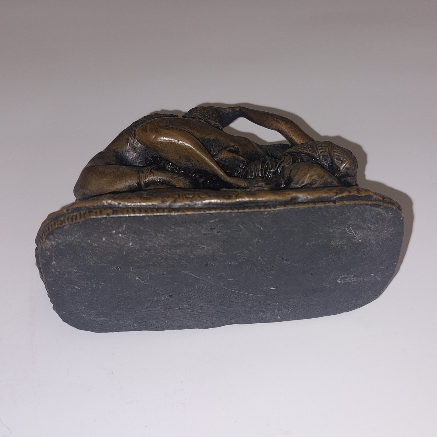 J. M. Lambeaux: Tung bronze patineret figur af to elskende kvinder. I god stand. God stand uden skader eller reparationer. Signeret af kunstneren på den ene side af soklen. Vejer 1100 gram. H. 7,3 cm L. 11,5 cm.
