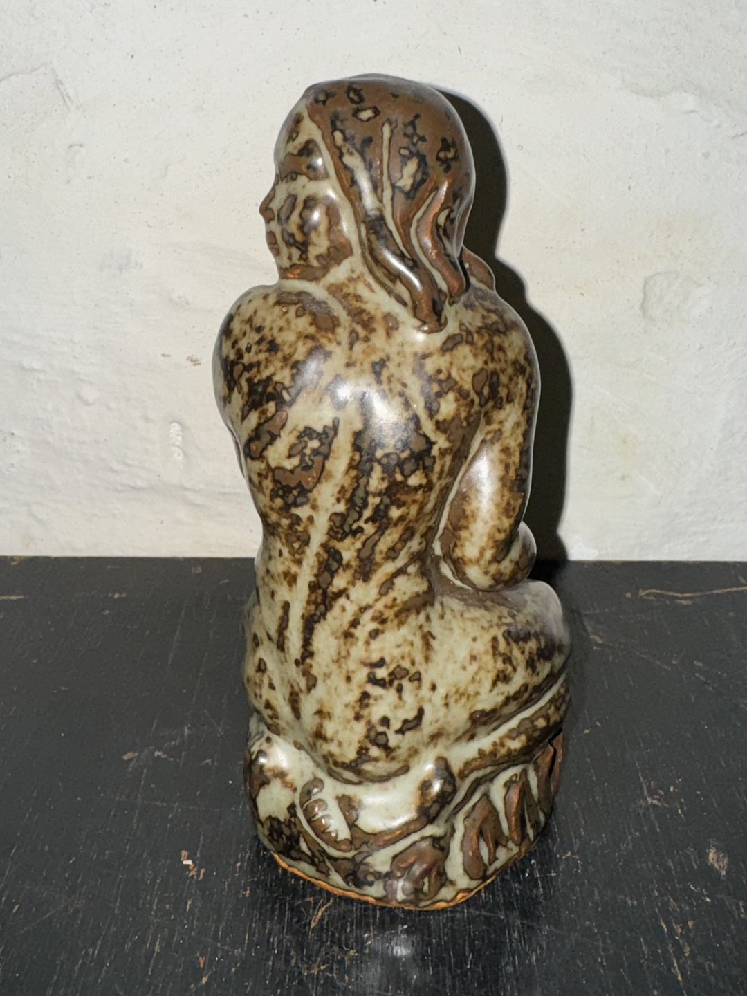 Figur i stentøj af nøgen kvinde fra Royal Copenhagen. I god stand. Fabriksmærket på bunden. H. 17 cm